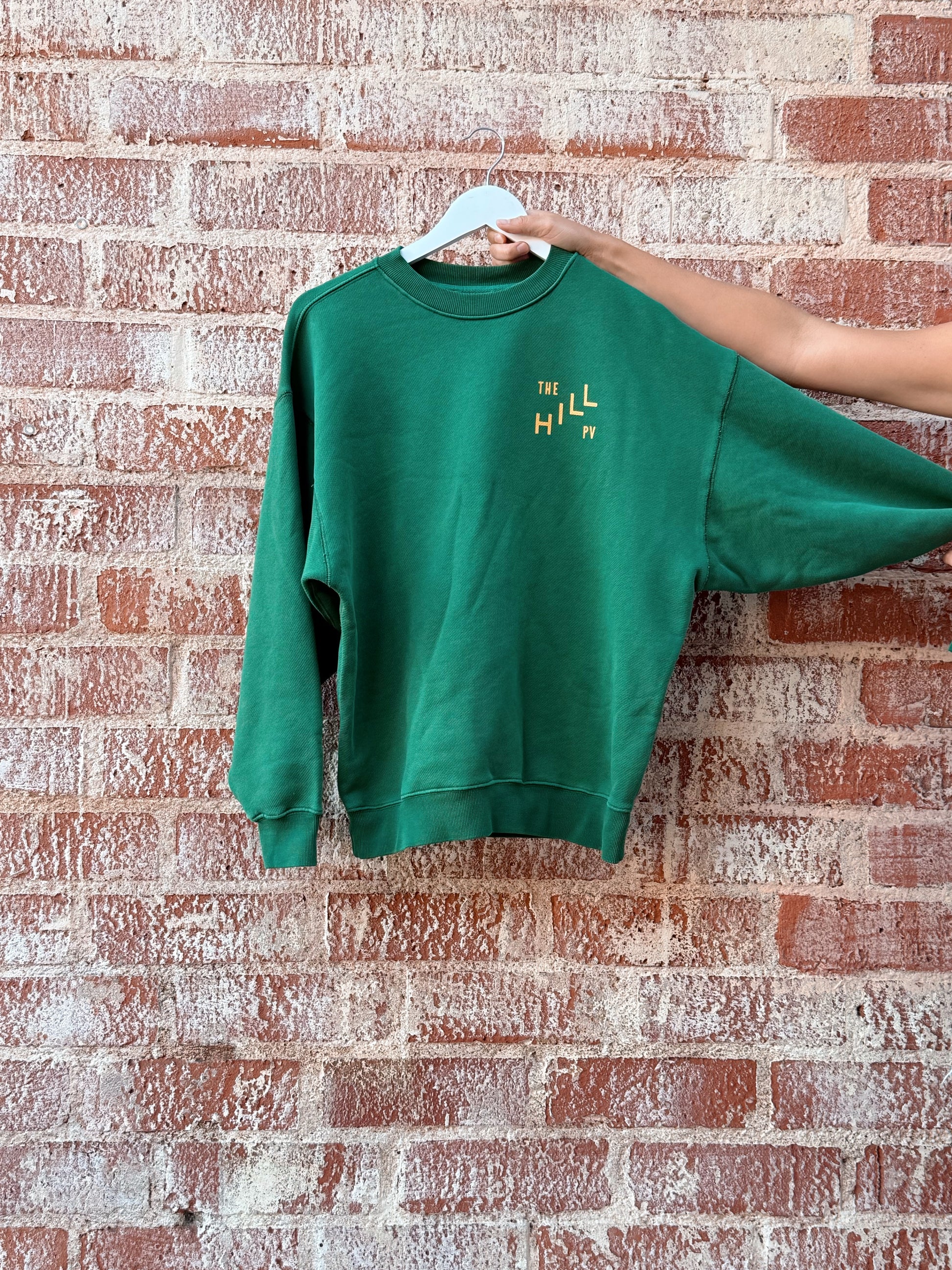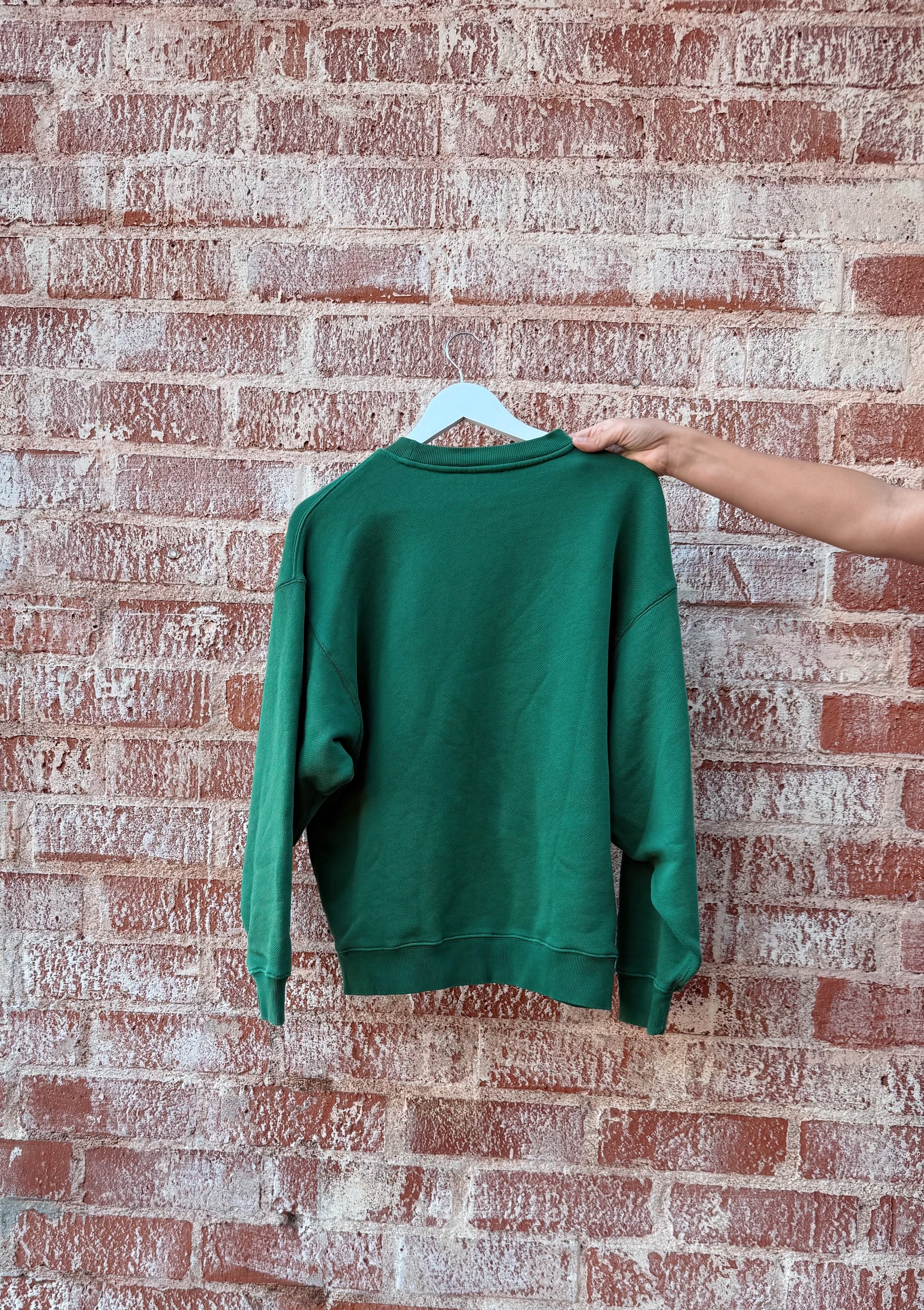 Classic style, simple design, everybody give it up for Mean Green. This 100% organic cotton crewneck is built to last, with a soft, heavy-duty feel thanks to its 12 oz brushed terry fabric. The vintage forest green color gives it that lived-in look.
