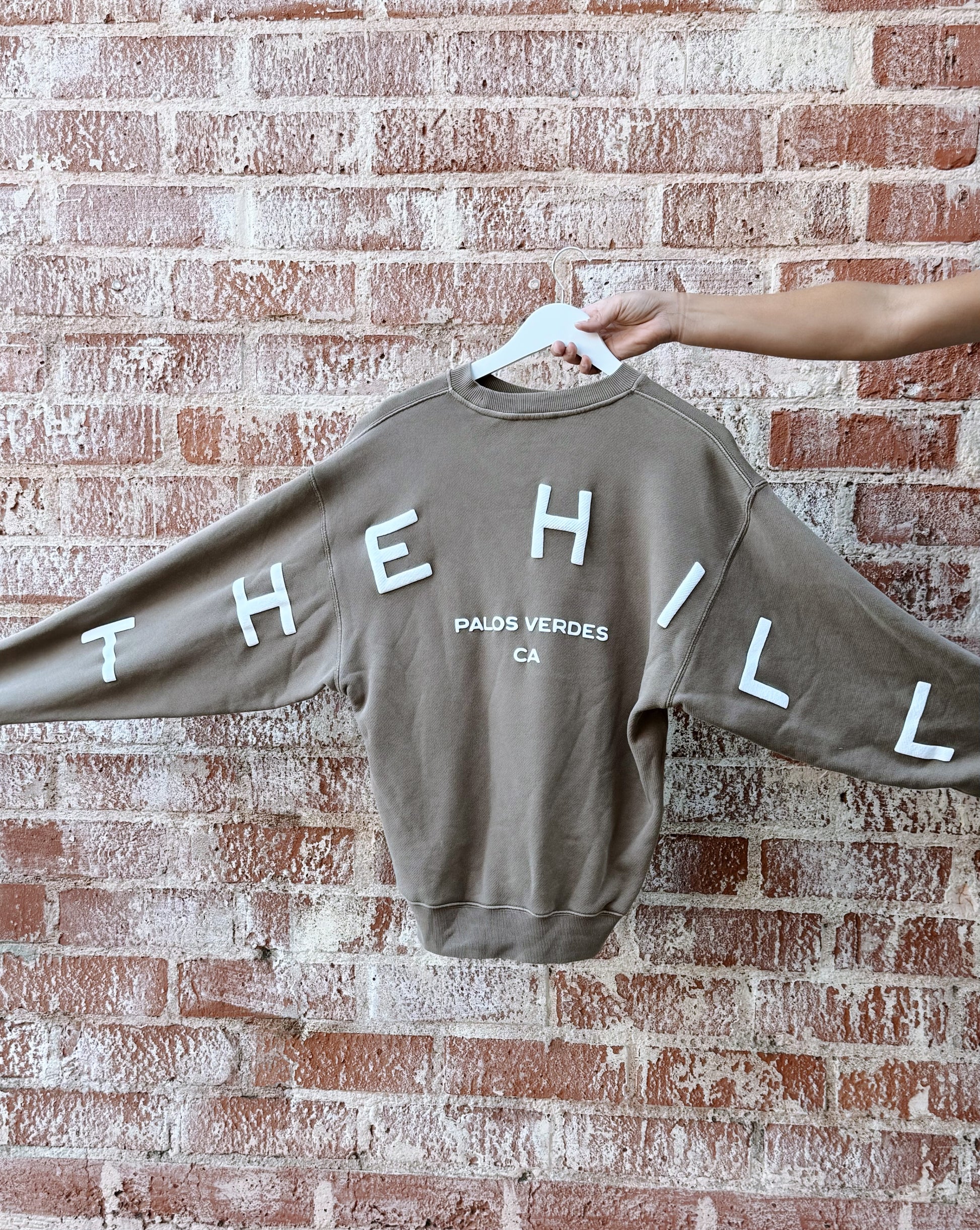 We did it once, we'll do it again! Our luxuriously soft, 100% cotton oversized crewneck sweatshirt is back in vintage brown with The Hill written across the back. Timeless, subtle and showing all the love to our favorite place, she is everything good, earthy and cozy. Get her before she's gone!